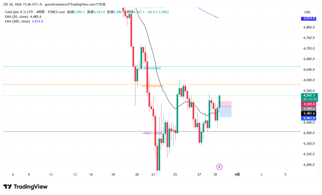 FX2026.03.30【100本チャレンジ1発目】FX ゴールドショート0.01ロット→負けた1000円ないなった まぁこんな感じです(笑) 特に根拠はないけど売りました。 また結果出たら報告します。
