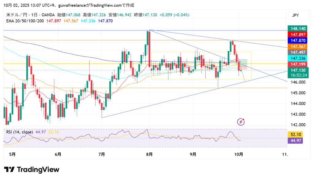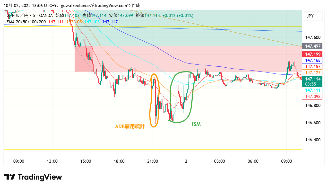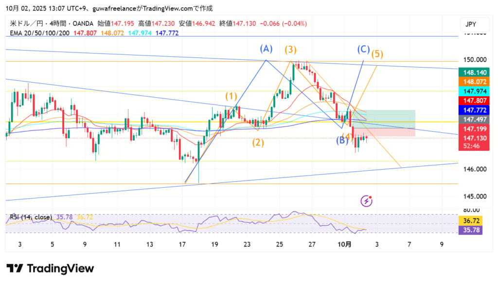 • エリオット波動を根拠にしたロングは、ファンダ要因(日銀タカ派・米政府閉鎖・ADP弱い数値)に逆らっており機能せず。