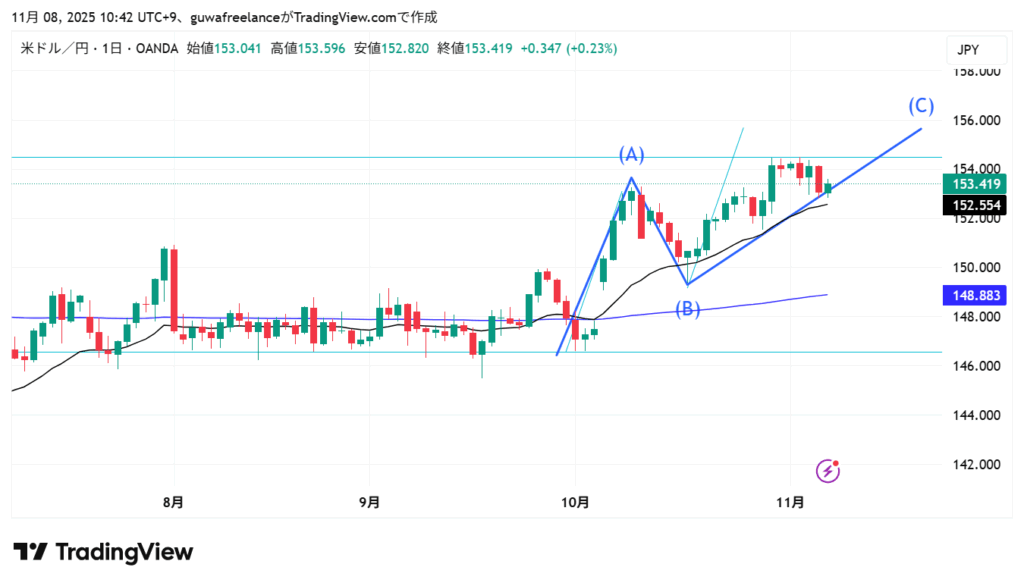 | 日足 | ロング | 上昇3波の途中、155.5目標 |