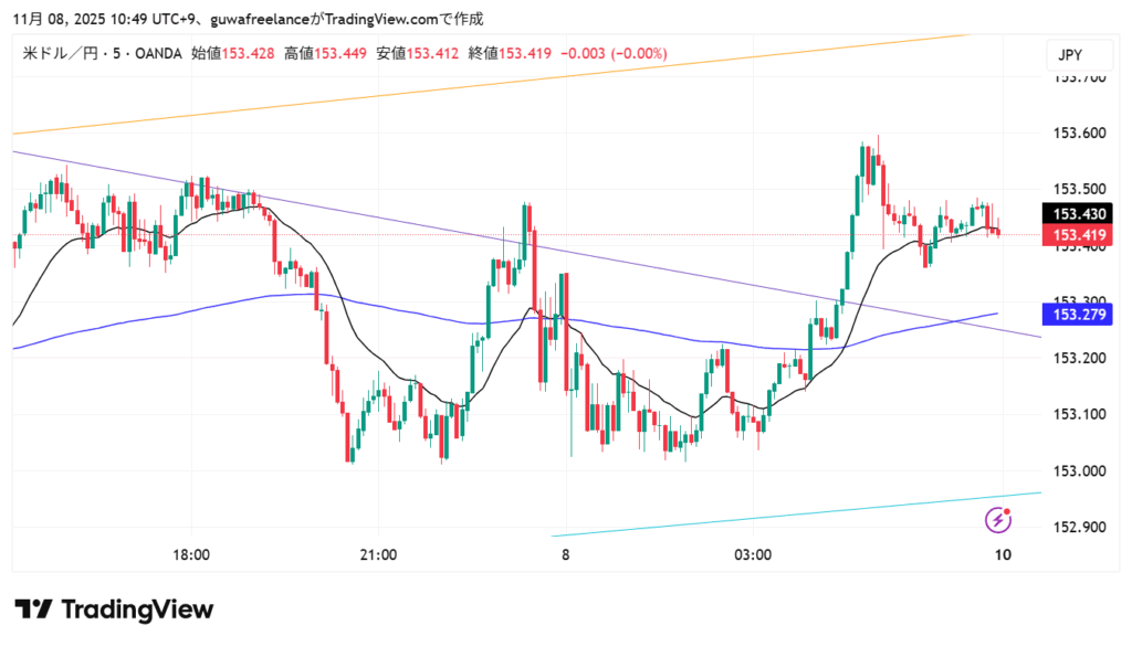 ✅ 5分方向性:ロング優勢、ただし153割れで一転ショート視点。
