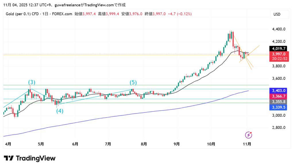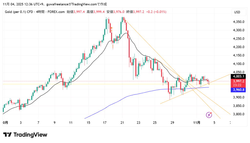 まずはショートしようと思ってた。ほんで4000まで引きつけてショートエントリーしようと思ったが来ず。この時点ではギャンブルというかスマホだけの雑な環境認識。