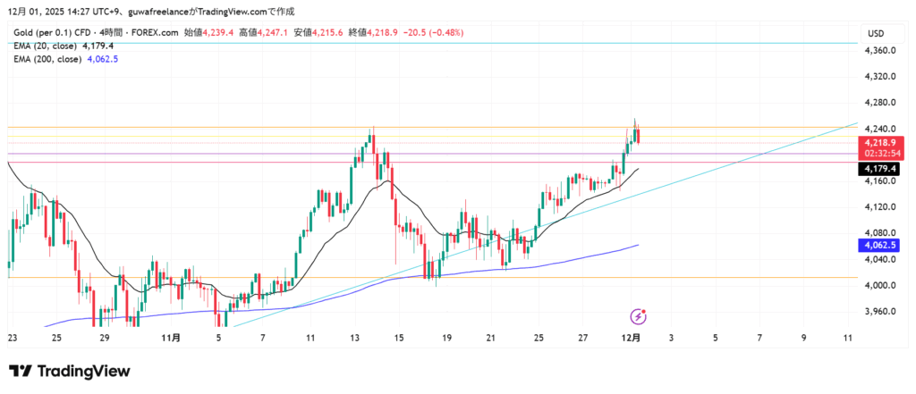 🟥 ① 上位足(1時間〜4時間)はアップトレンド