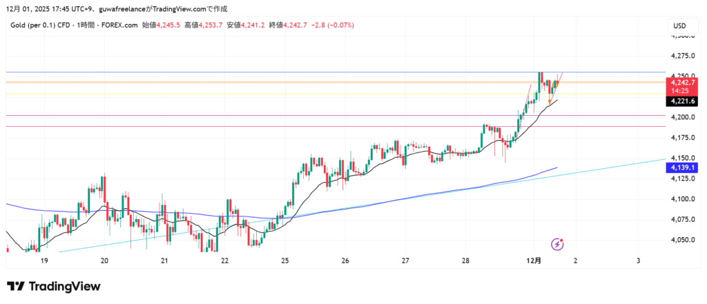 - 4255 まで抜けたことで 「あ、上方向継続やな」 と思いやすい場面