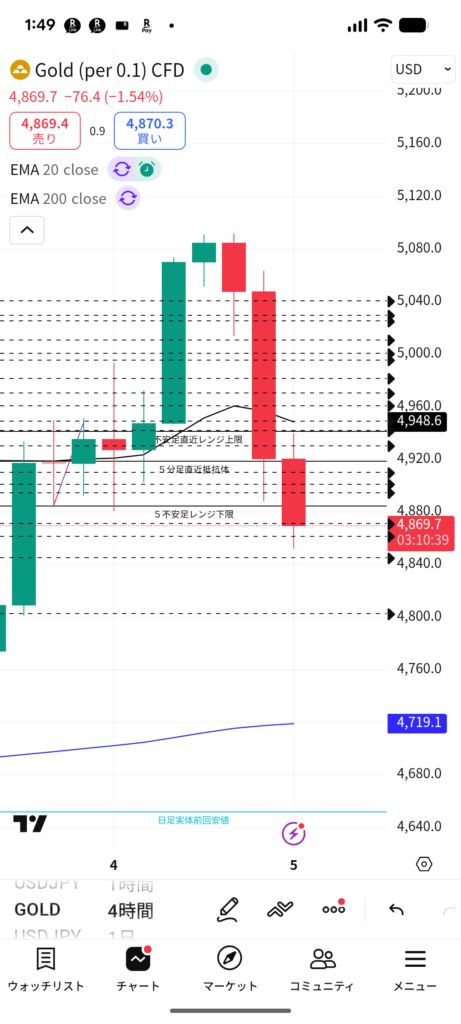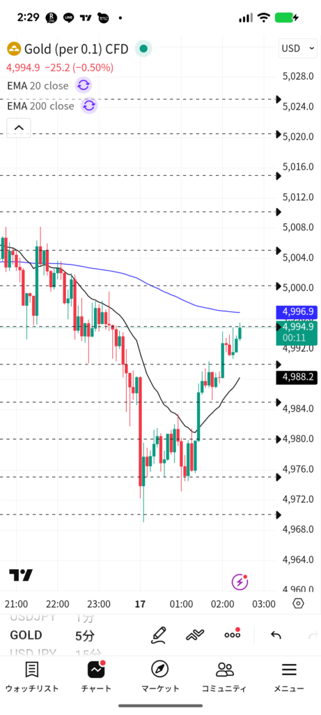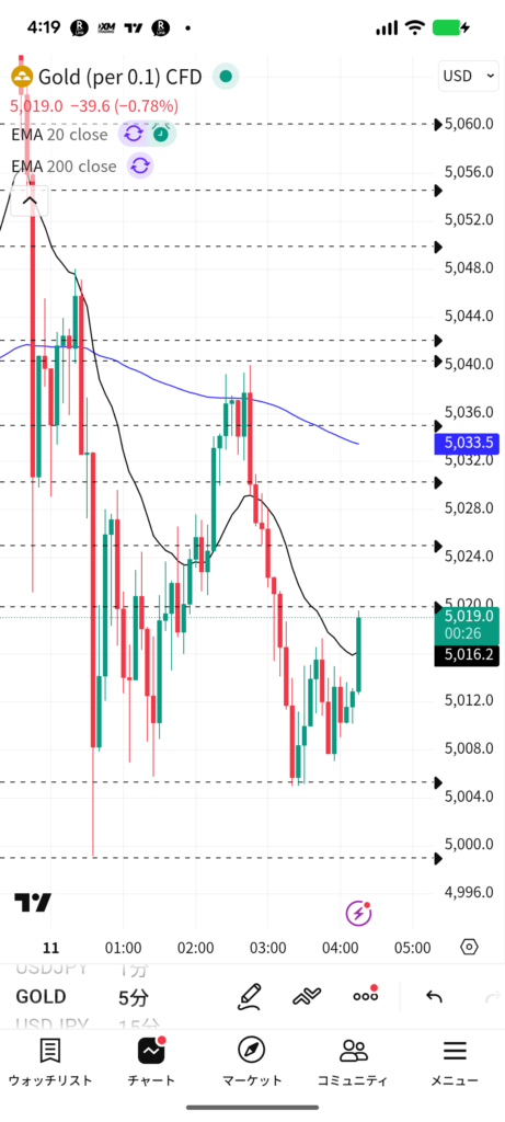 4戦目 ゴールド0.1ロットロング 負け -3.5万
