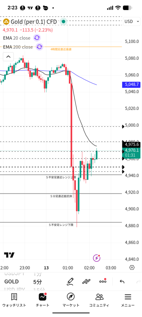 普段というかいつもやったら反発狙ってロングやけど1月末にそれで負けて更に下降が凄くて同じと思ってショート入ったけど利確間に合って刈られた。ドンマイ
