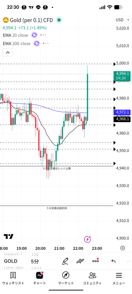 5戦目 ゴールド0.1ロットショート勝ち +120000くらい