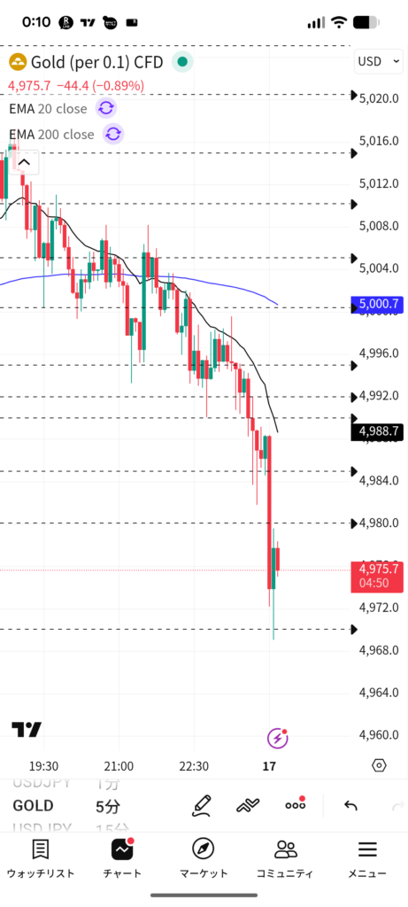 1戦目 ゴールドショート0.1ロット 負けマイナスー3万