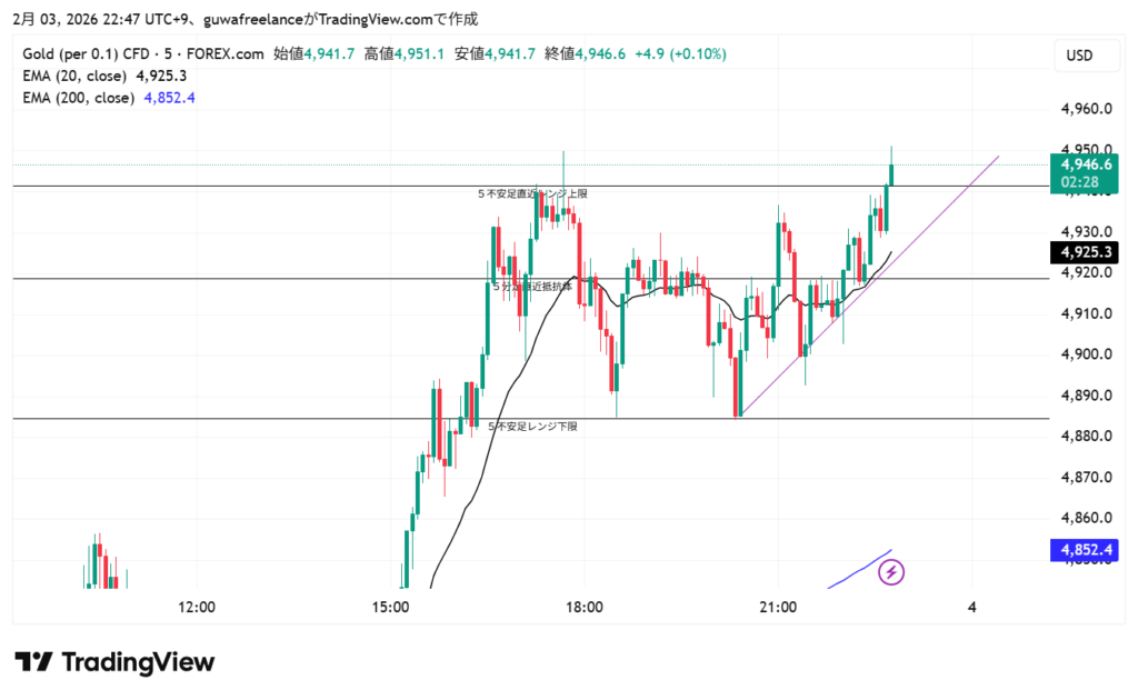 ゴールド0.1ロットロングorショートのみ 5分足で急下降or急上昇の反発狙いトレード
