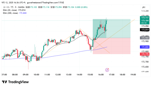 - リスクリワードはエントリー時点で1:2以上 → エントリー条件としては合格。