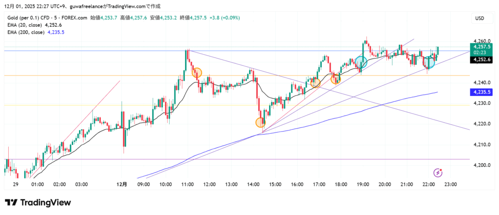 → 実際その後、20EMAから強く反発し上昇した - 今日の相場は「20EMAが非常によく機能する日」であり、