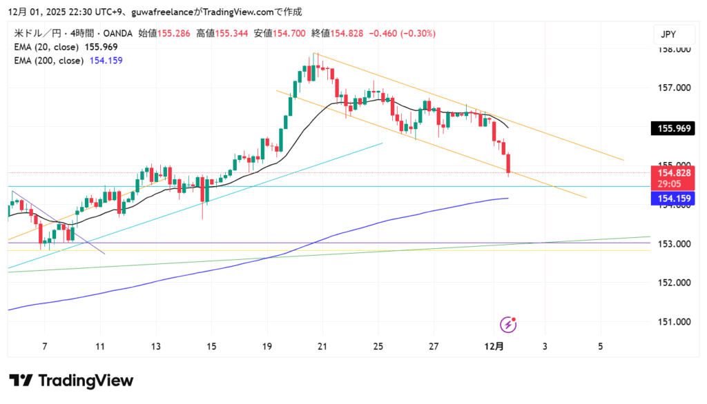 - 実は同じタイミングで ドル円ショート を検討していた。