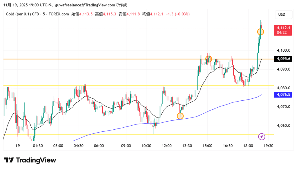 ◆① 今回のゴールドの流れ(4H → 1H → 5分)