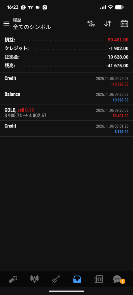 FX2025.11.06ゴールドショート0.15ロット 負けマイナス5万円 5戦1勝1負3分 ポスト シェア はてブ 送る Pocket 負け以上!お金無いなった。今月プラマイゼロ。まぁ1勝1敗やからそうなるわな。